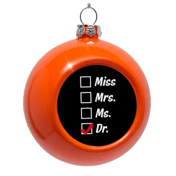Miss, Mrs, Ms, DR, Orange Christmas tree ornament bauble 8cm