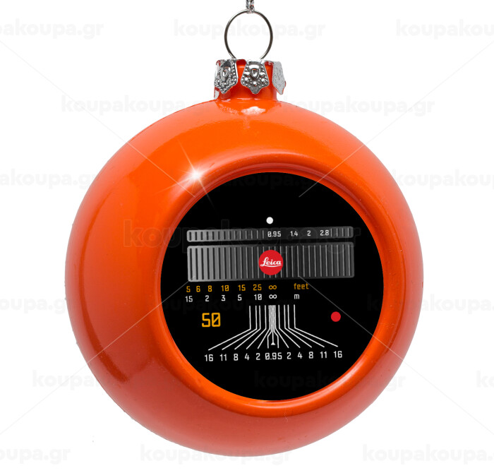 Leica Lens, Orange Christmas tree ornament bauble 8cm