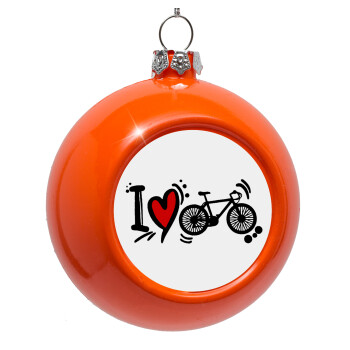 I love my bike, Orange Christmas tree ornament bauble 8cm
