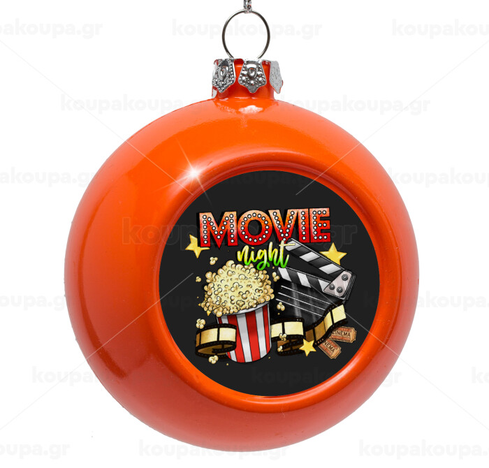 Movie night, Orange Christmas tree ornament bauble 8cm