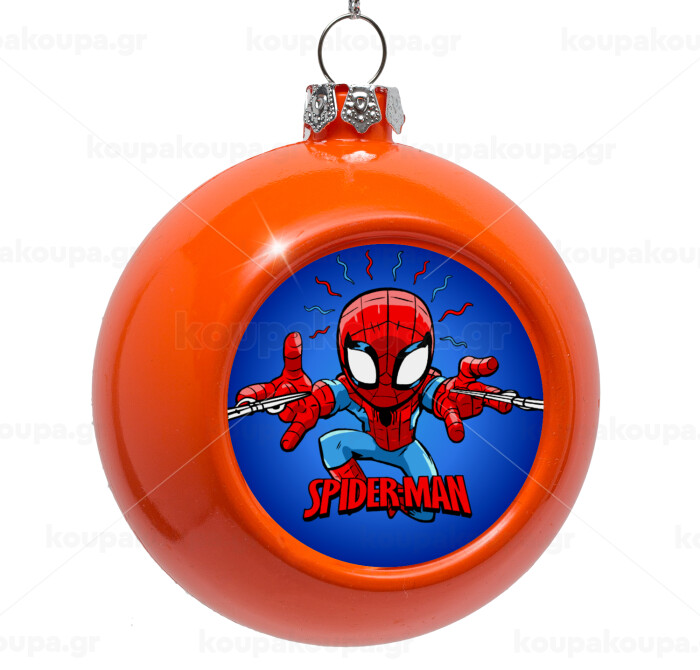 Spiderman flying, Orange Christmas tree ornament bauble 8cm