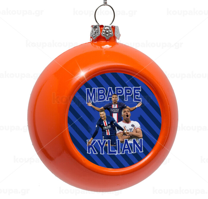 Kylian Mbappé, Orange Christmas tree ornament bauble 8cm