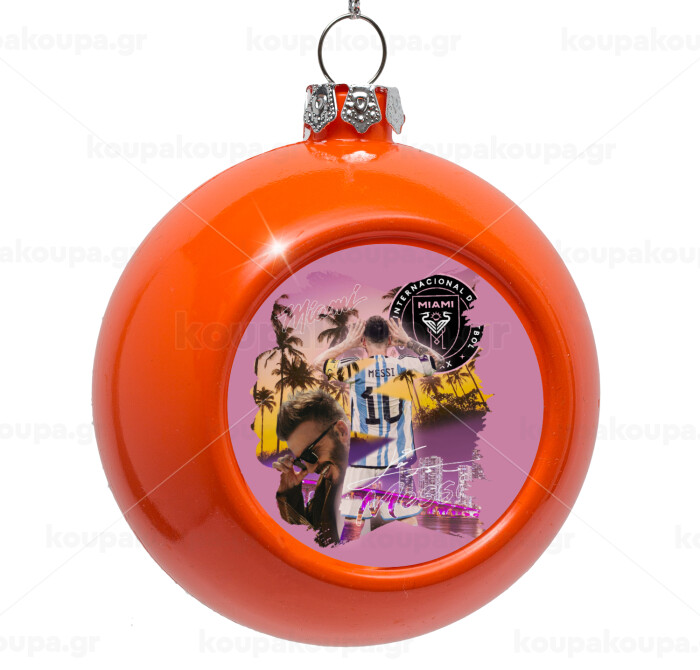 Lionel Messi Miami, Orange Christmas tree ornament bauble 8cm