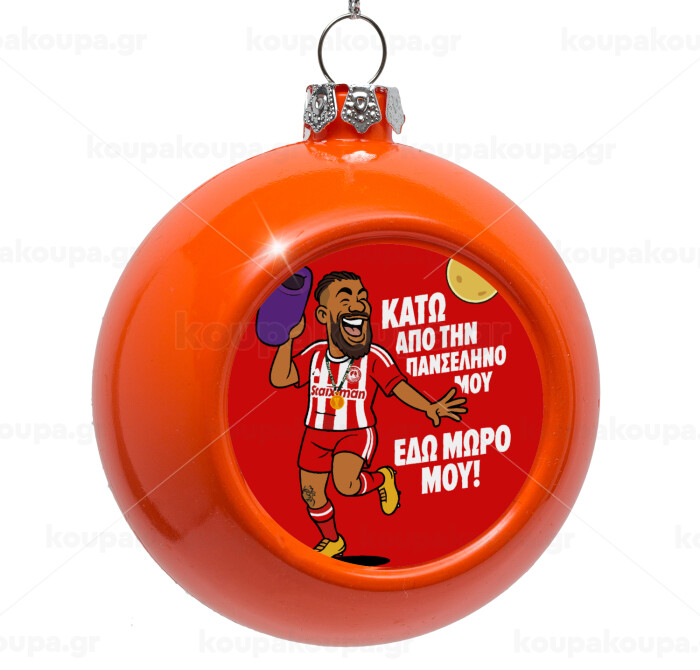 Ροντινέι, "ΚΑΤΩ ΑΠΟ ΤΗΝ ΠΑΝΣΕΛΗΝΟ ΜΟΥ!", Orange Christmas tree ornament bauble 8cm