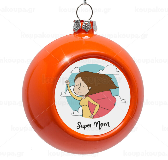 Super mom, Orange Christmas tree ornament bauble 8cm
