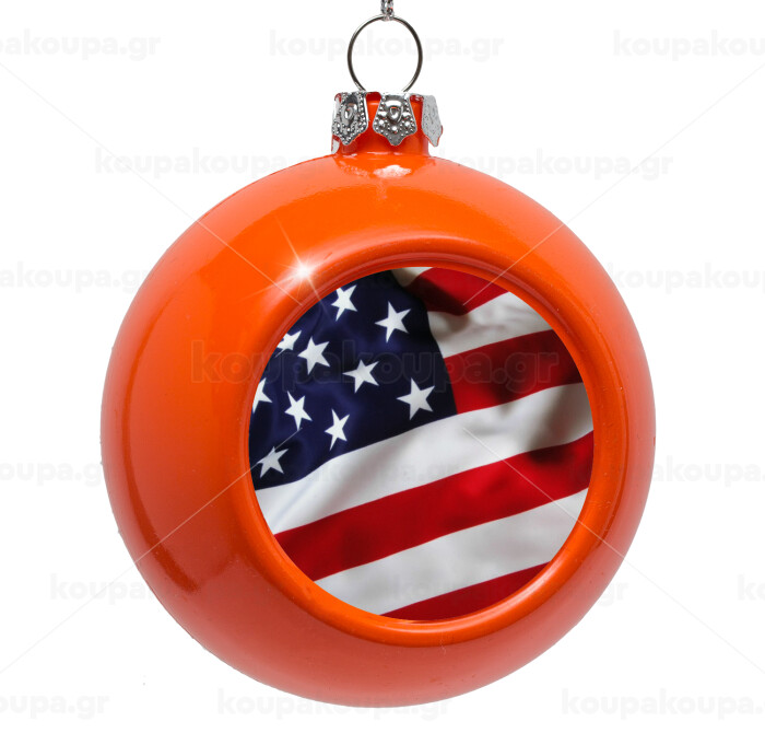 USA Flag, Orange Christmas tree ornament bauble 8cm