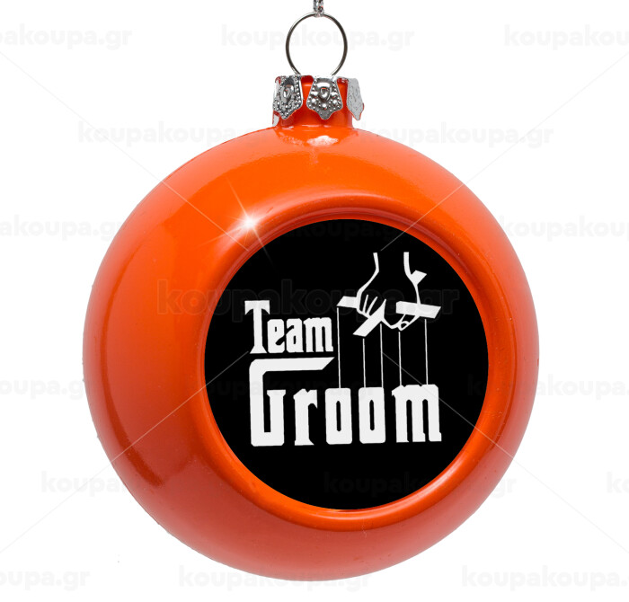 Team Groom, Orange Christmas tree ornament bauble 8cm