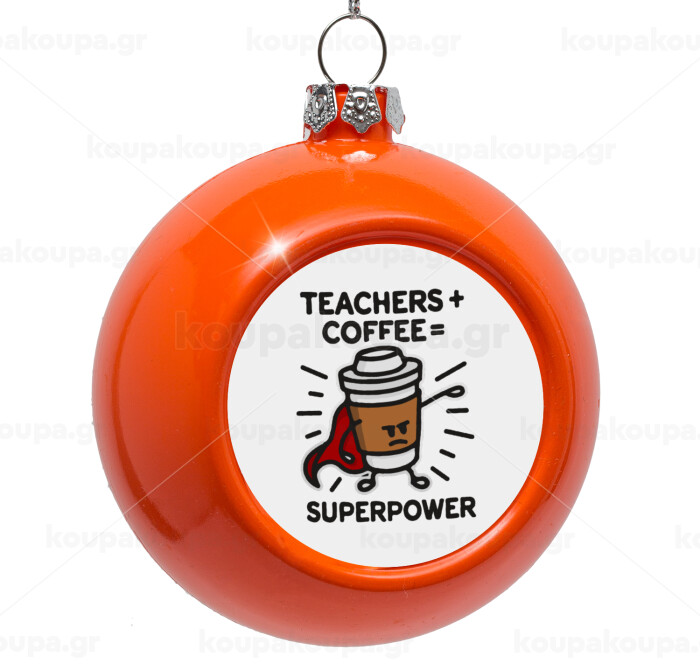 Teacher Coffee Super Power, Orange Christmas tree ornament bauble 8cm