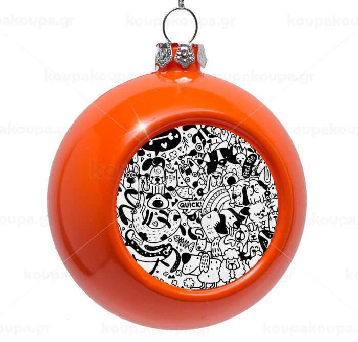 DOG pattern, Orange Christmas tree ornament bauble 8cm