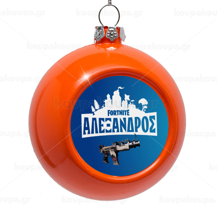 Fortnite with gun με το όνομα σου, Orange Christmas tree ornament bauble 8cm