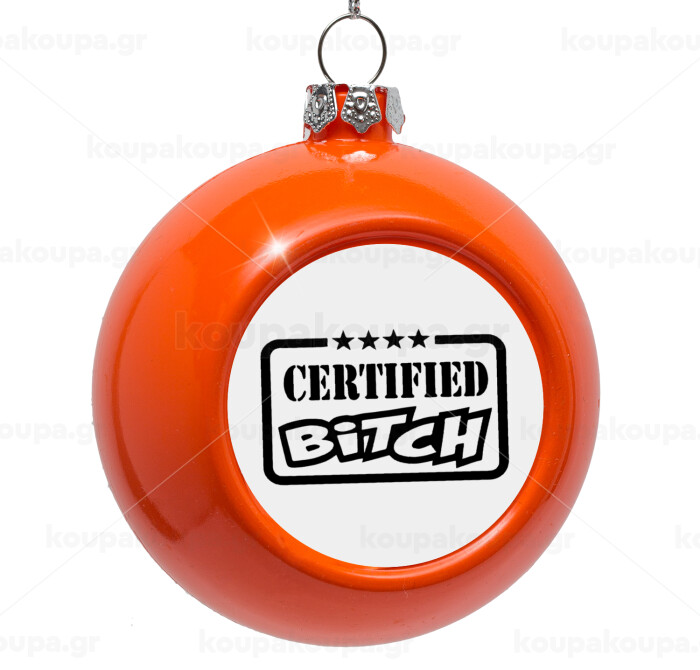 Certified Bitch, Orange Christmas tree ornament bauble 8cm