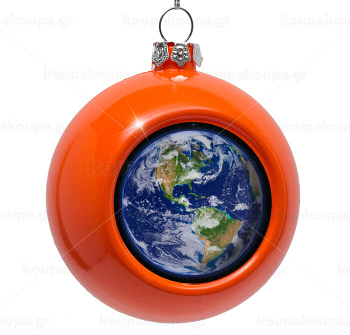 Planet Earth, Orange Christmas tree ornament bauble 8cm
