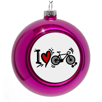 I love my bike, Purple Christmas tree ornament bauble 8cm