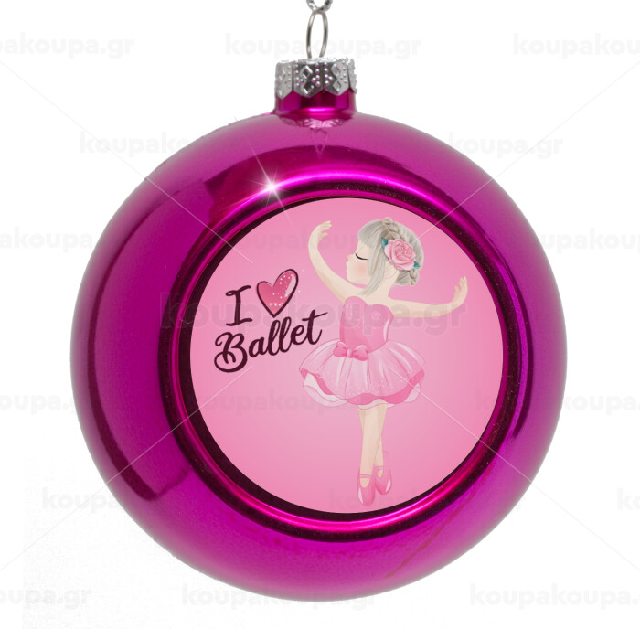 I Love Ballet, Purple Christmas tree ornament bauble 8cm