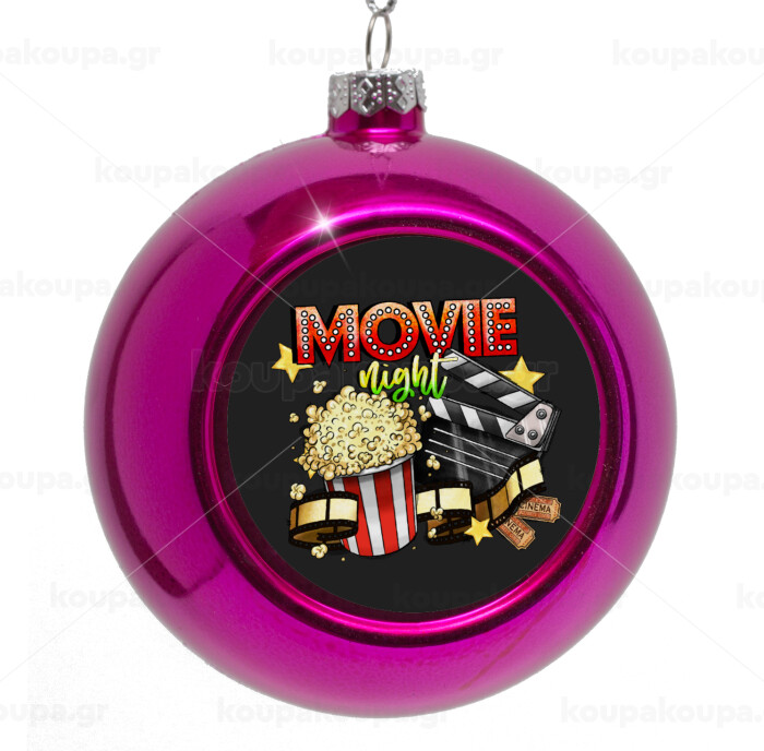 Movie night, Purple Christmas tree ornament bauble 8cm