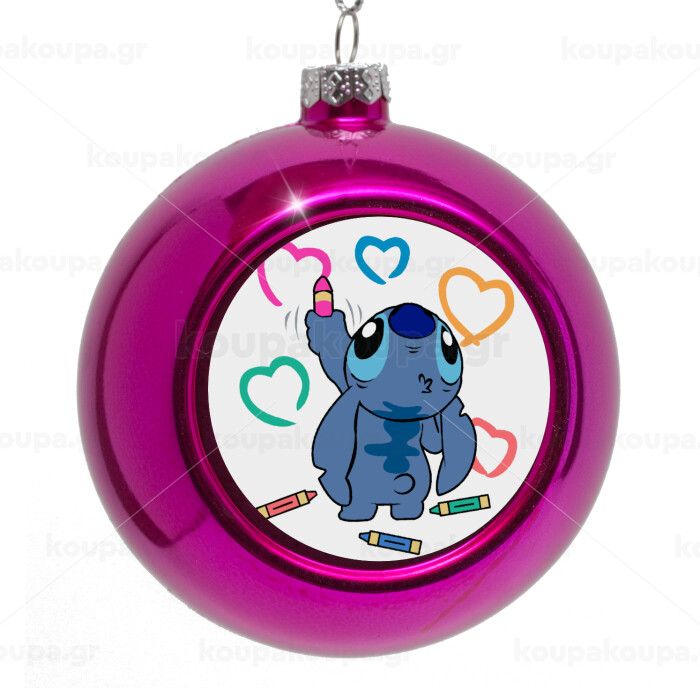 Lilo & Stitch painting, Purple Christmas tree ornament bauble 8cm