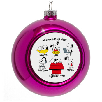 Snoopy what makes my happy, Purple Christmas tree ornament bauble 8cm