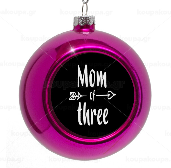 Mom of three, Purple Christmas tree ornament bauble 8cm