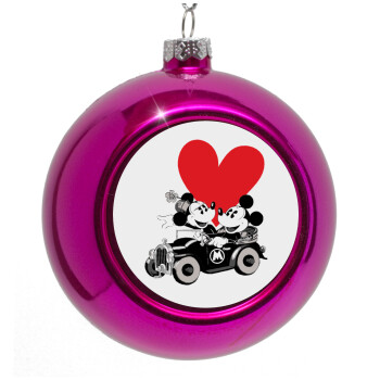 Mickey & Minnie love car, Purple Christmas tree ornament bauble 8cm