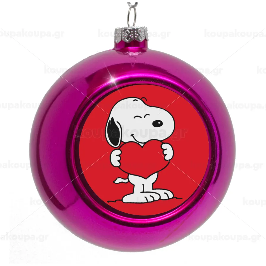 Snoopy takemy heart, Purple Christmas tree ornament bauble 8cm