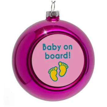 Baby on Board πατουσα Κορίτσι, Purple Christmas tree ornament bauble 8cm