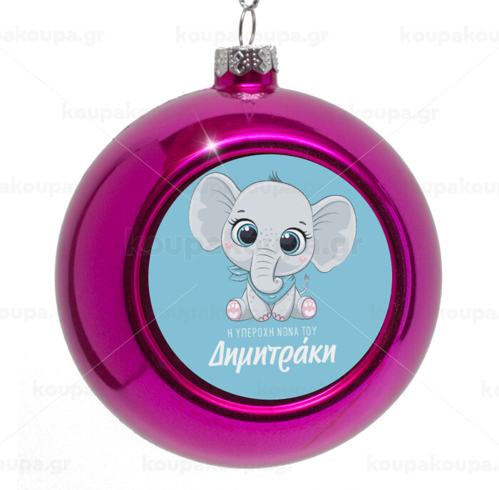 Η νονά μου, ελεφαντάκι γαλάζιο, Purple Christmas tree ornament bauble 8cm