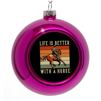 Life is Better with a Horse, Purple Christmas tree ornament bauble 8cm