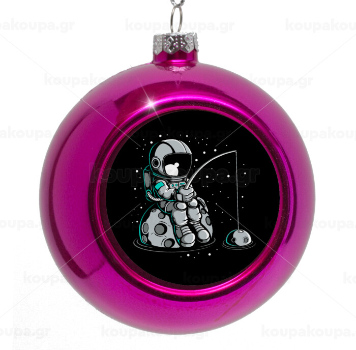 Little astronaut fishing, Purple Christmas tree ornament bauble 8cm