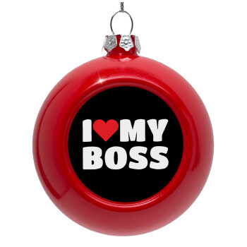 I LOVE MY BOSS, Red Christmas tree ornament bauble 8cm