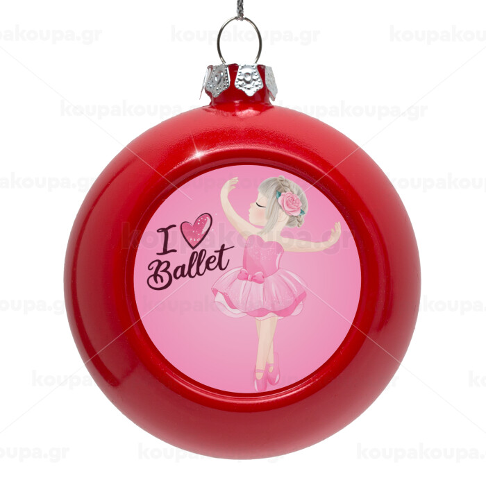 I Love Ballet, Red Christmas tree ornament bauble 8cm