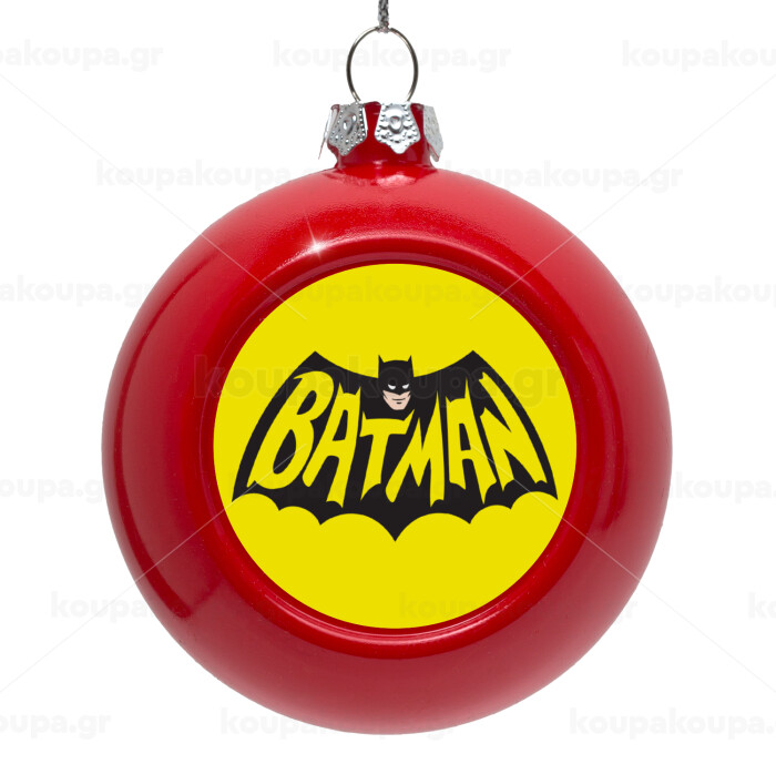 Batman classic logo, Red Christmas tree ornament bauble 8cm
