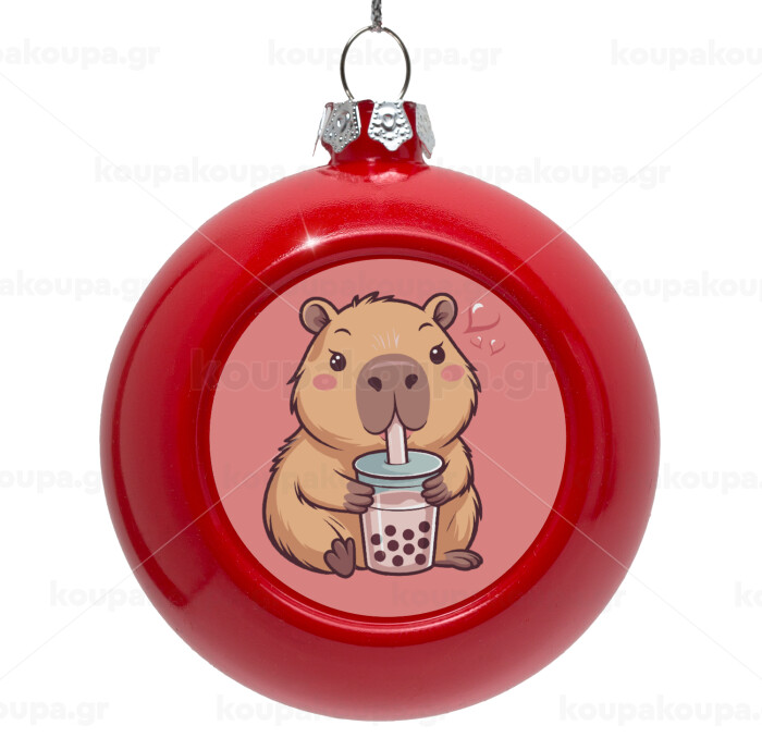Capybara Bubble Tea, Red Christmas tree ornament bauble 8cm