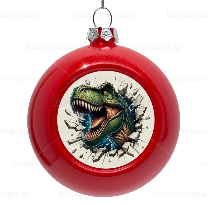 Dinosaur break wall, Red Christmas tree ornament bauble 8cm