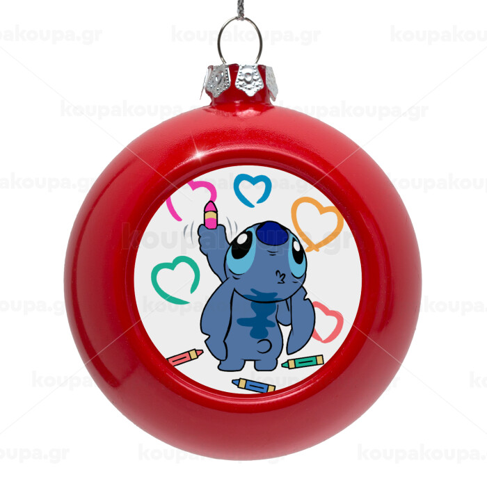Lilo & Stitch painting, Red Christmas tree ornament bauble 8cm