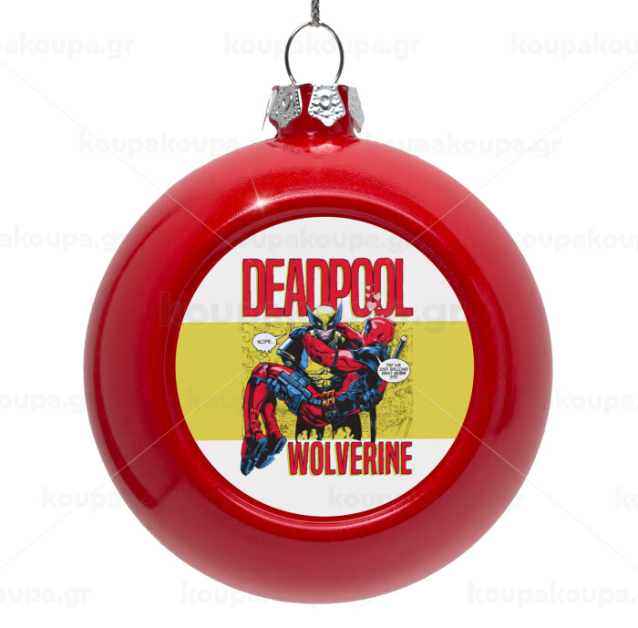 Superhero Deadpool Wolverine, Red Christmas tree ornament bauble 8cm