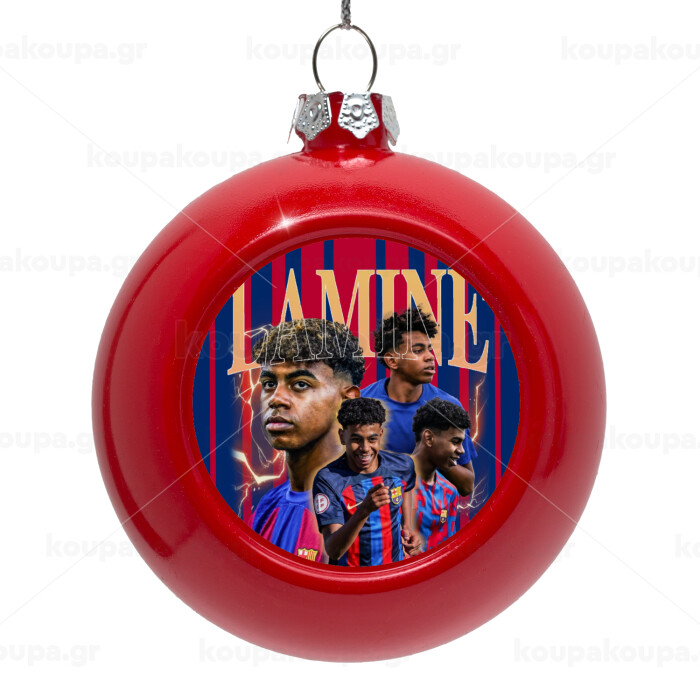 lamine yamal FCB, Red Christmas tree ornament bauble 8cm
