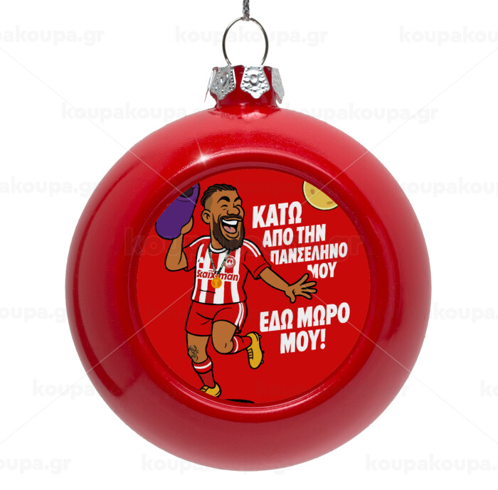 Ροντινέι, "ΚΑΤΩ ΑΠΟ ΤΗΝ ΠΑΝΣΕΛΗΝΟ ΜΟΥ!", Red Christmas tree ornament bauble 8cm