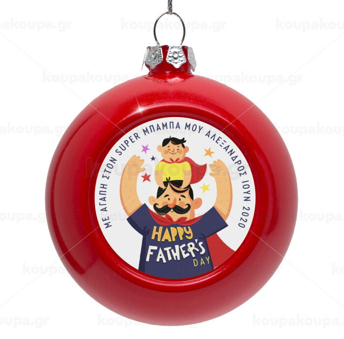 Happy Fathers Day με όνομα, Red Christmas tree ornament bauble 8cm