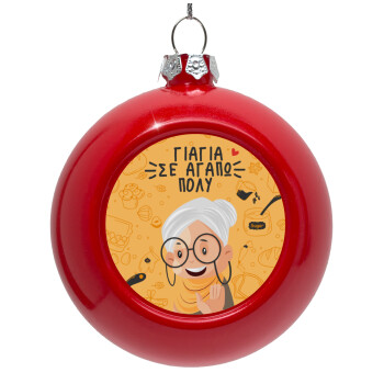 Γιαγιά σε αγαπώ πολύ!, Red Christmas tree ornament bauble 8cm