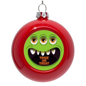 Halloween trick or treat 3 eyes monster, Red Christmas tree ornament bauble 8cm