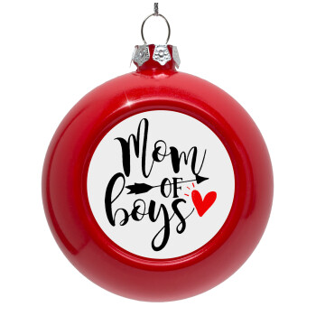 Mom of boys, Red Christmas tree ornament bauble 8cm