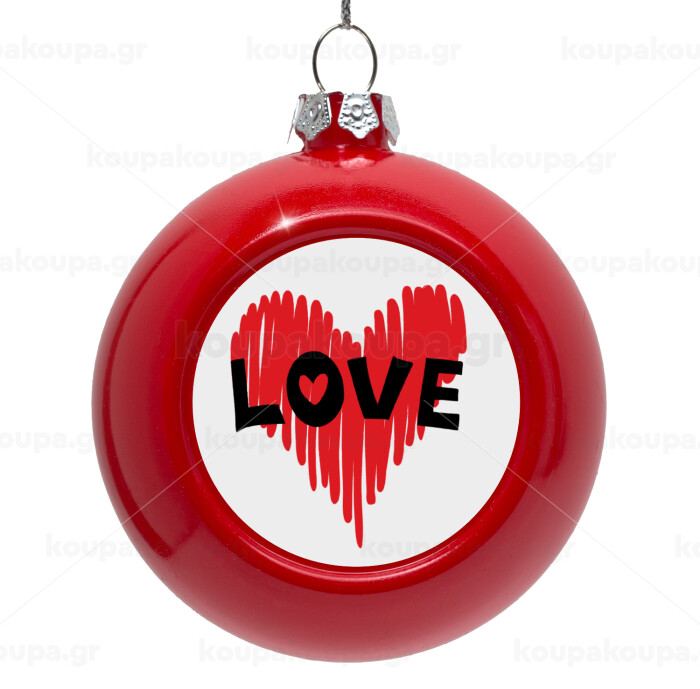 I Love You red heart, Red Christmas tree ornament bauble 8cm