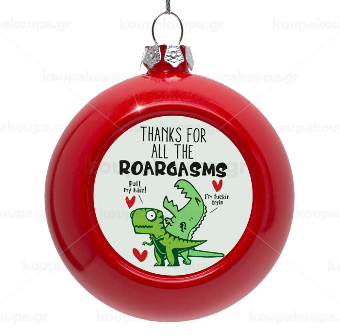 Thanks for all the ROARGASMS, Red Christmas tree ornament bauble 8cm