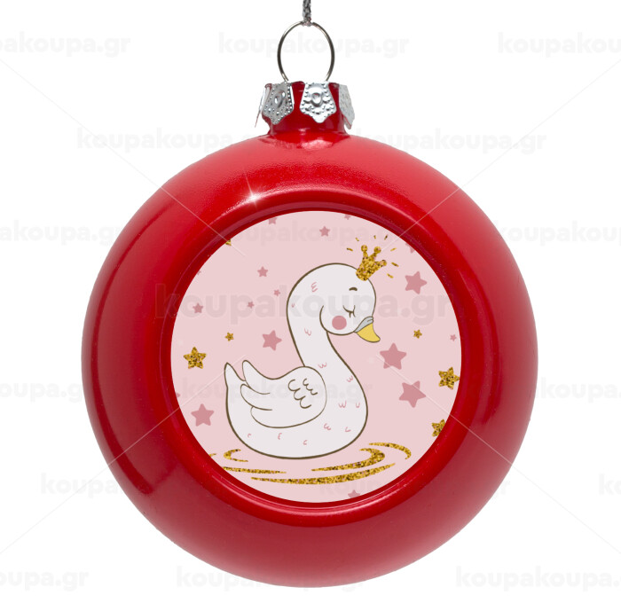 Crowned swan, Red Christmas tree ornament bauble 8cm