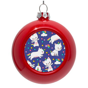 Cats unicorns, Red Christmas tree ornament bauble 8cm
