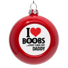 I Love boobs ...just like my daddy, Red Christmas tree ornament bauble 8cm