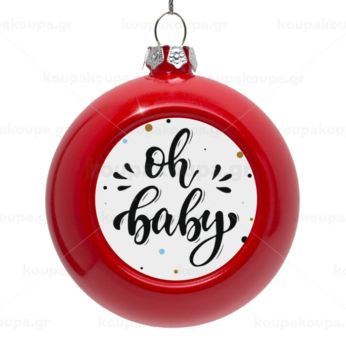 Oh baby, Red Christmas tree ornament bauble 8cm