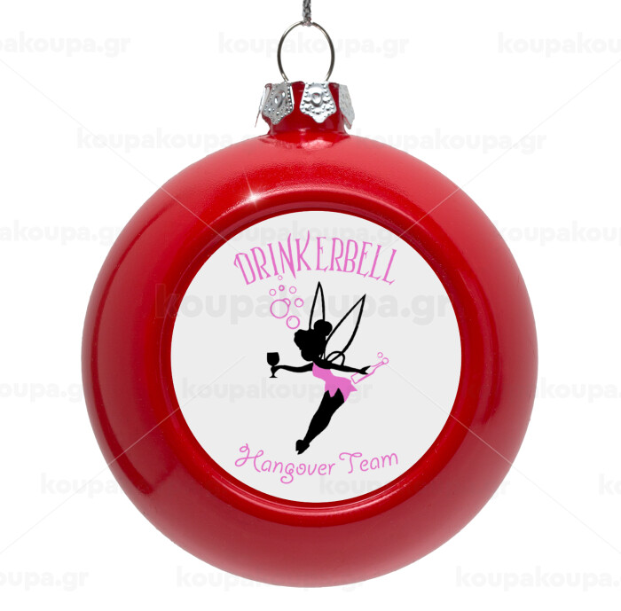 Drinkerbell bachellor, Red Christmas tree ornament bauble 8cm