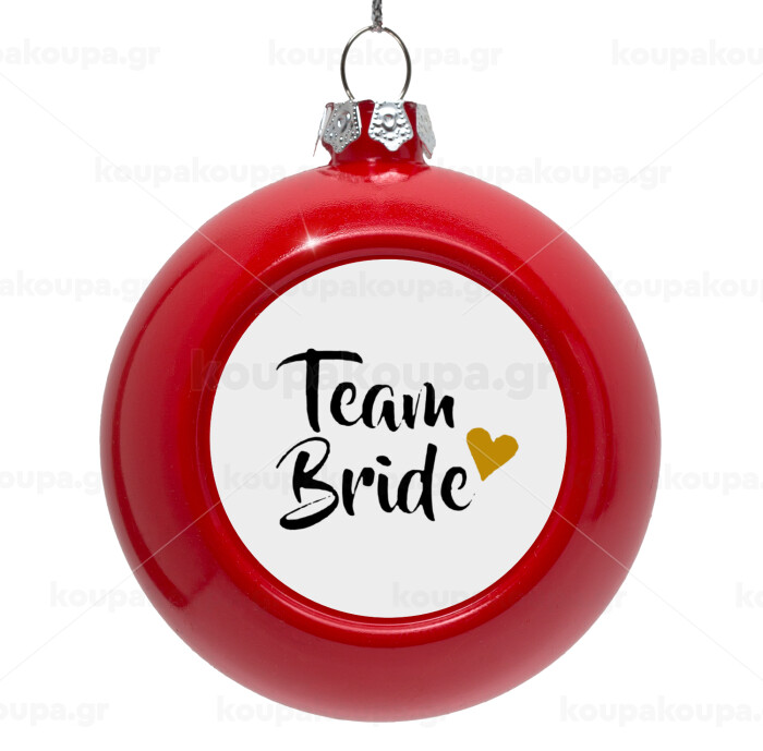 Team Bride, Red Christmas tree ornament bauble 8cm