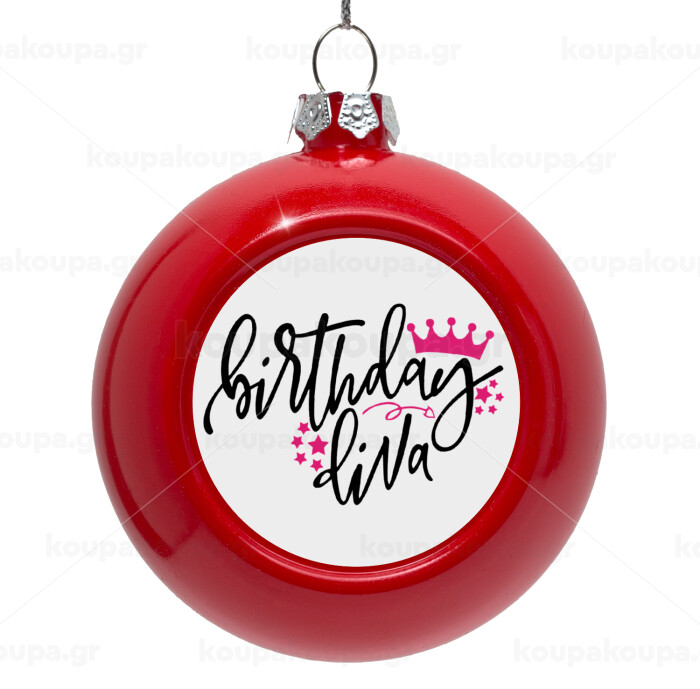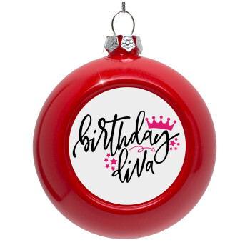 Birthday Diva queen, Red Christmas tree ornament bauble 8cm